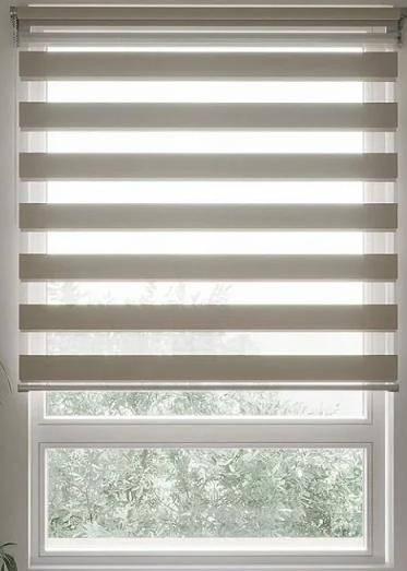 Quando totalmente estendida, a Cortina Double Vision projeta elegantes faixas de luz e sombra que transformam qualquer ambiente. Isso é possível graças à combinação inteligente de dois tipos de tecidos: uma tela ultrafina intercalada com faixas de tecido mais encorpado. O tecido forma painéis contínuos e sobrepostos que deslizam suavemente por roldanas discretamente posicionadas na parte superior. Ao alinhar as faixas mais grossas do painel frontal com as do painel traseiro, a luz penetra de forma suave, criando o efeito exclusivo de luminosidade e sombra. Para bloquear a luz direta, basta sincronizar as faixas encorpadas, mantendo o ambiente iluminado na medida certa para oferecer conforto visual e destacar móveis e objetos com elegância.